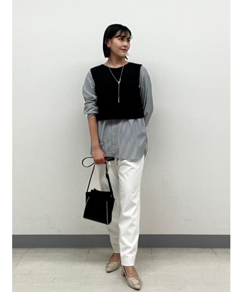 きちんと感と抜け感を両立したレイヤード風のデザイントップスです! 伸縮性のある素材で着心地も抜群です。きれいめなボトムで通勤にも、普段はデニム合わせでオンオフ問わず活躍する万能コーデです◎