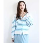 ドット釦Vネックカーディガン(無地・ボーダー)/洗える