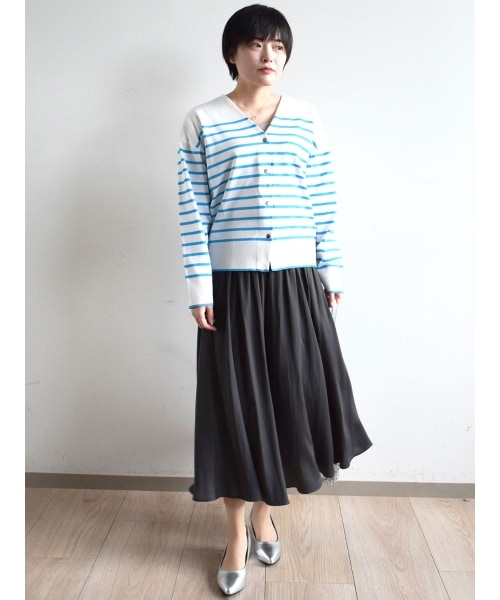 ドット釦Vネックカーディガン(無地・ボーダー)/洗える