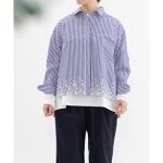 裾刺繍が春らしいクロップドシャツにランダムドット柄が目を惹くデザインのスカートを合わせたコーディネート。 裾刺繍が春らしいクロップドシャツシャツはバランスが取りやすくスカート以外にもパンツスタイルにも合わせやすくおススメです。