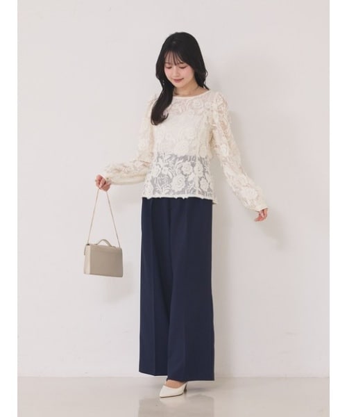 カラーアナリスト・骨格診断アドバイザーなど 様々な資格を持つ北野百笑さんとEMMA ROUGE VIFによる スペシャルコラボブラウスが登場! シアーな花柄レースがポイントの 一枚でスタイリングが決まる万能ブラウス。