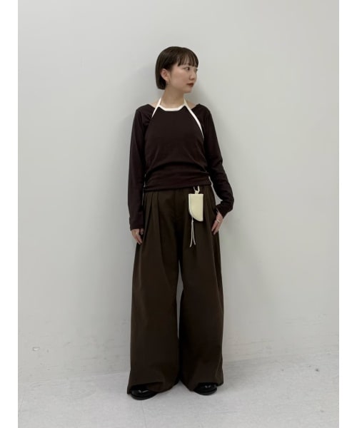 ホルダーネックのビスチェがSETになった 着映えするトップスです◎ デザインがかわいいので シンプルにブラウンのワントーンで 合わせてみました。 ウエストに付けたポーチがワンポイントで お気に入りです。
