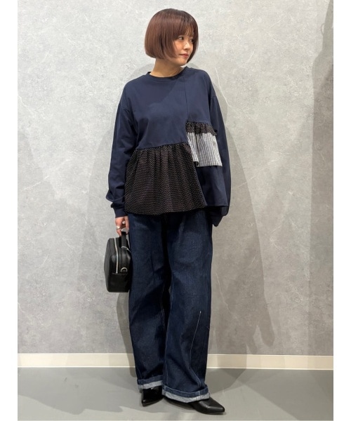 異素材mixデザインヘムトップス