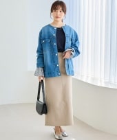 大きめのギンガムチェックが大人可愛い、スタイリングの主役になるナロースカート。体のラインを拾いすぎない、すとんと落ちるIラインシルエットが脚長効果を叶えます。後ろウエストはゴム仕様で、お腹周りもリラックス感のある穿き心地。