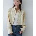 フラワーエンブロイダリークロップドシャツ