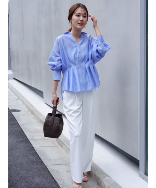 ウォッシャブルパール釦スキッパータックブラウス