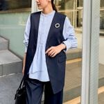 入学式にもおすすめの クリームがかったアイボリーカラーのジレセットアップ。