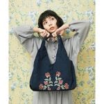 フラワー刺繍ナイロントートバッグ