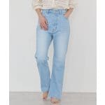 【着用サイズ プルオーバー:M ビスチェ:F デニム:M】膝少し上の位置から程よく広がるフレアシルエットのデニムです。柔らかい生地で、ストレッチも効いているので穿き心地が良いです。