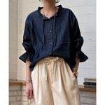軽やかなライトオンスデニムを使用した、表情のあるシャーリングブラウス。