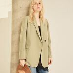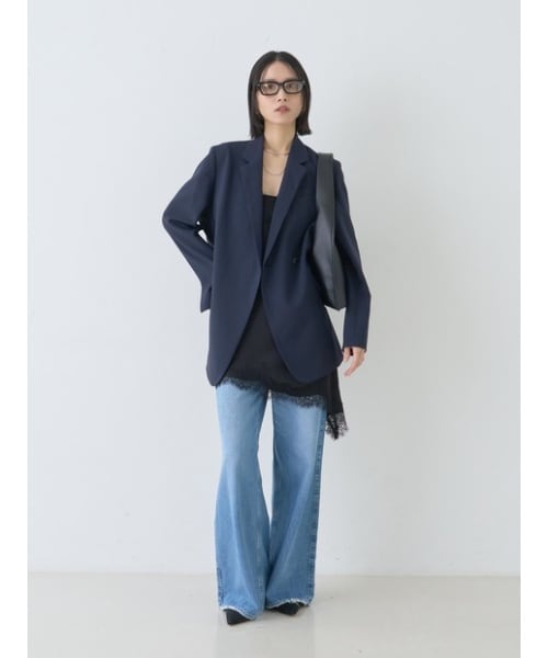 クリーンな表情と上品な女らしさを 両立したデザインジャケット。 前立てはボタンが見えない比翼風の仕立てにすることで 余計な装飾を排し、襟元から裾にかけての 「素肌にまとわせた」ような軽やかな雰囲気を演出。