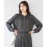 バンドカラーサテンブラウス/接触冷感/UVカット/洗える