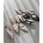 <26春夏新作>【22.5-25.5】ビジューバックルシアーミュールパンプス