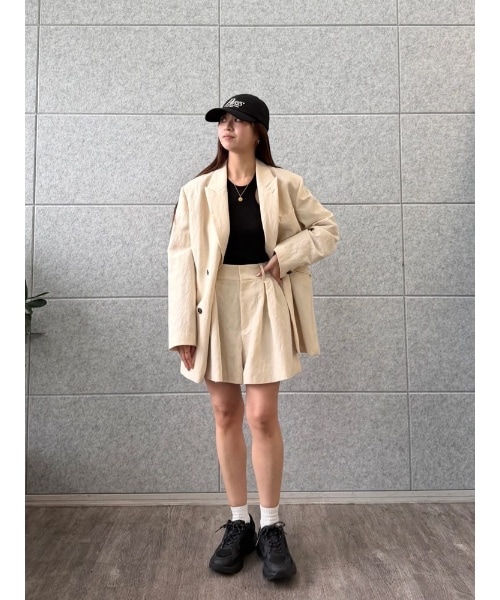 ● arc tailored jacket 大きめのサイズ感が魅力のテイラードジャケット。元々しわ感のある素材なのでそんなにかっちりと決まりすぎないのもポイント。黒のジャケットは持っているという方も多いのかなと思います。ベージュにすると女性らしさがグッと増すのでおすすめです!