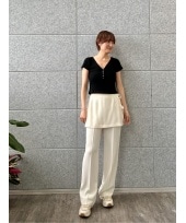 □cropped lager tee ゆったりな身幅に対してクロップド丈と、肘のカッティングで全体的に抜け感のあるラガーシャツです。モノトーンな配色がカジュアルすぎず、モードな印象にも着こなせます◎