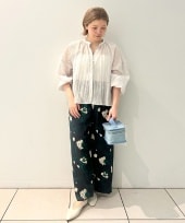 くるぶしくらいの着丈。ピタっと体に密着しないので、夏まで履けそうです。立体感あるジャガード素材はIENAらしくて、何枚も欲しくなる1枚。春はジャケットやニット、夏はTシャツにサンダルで色んなスタイリングを楽しめそうです♪