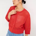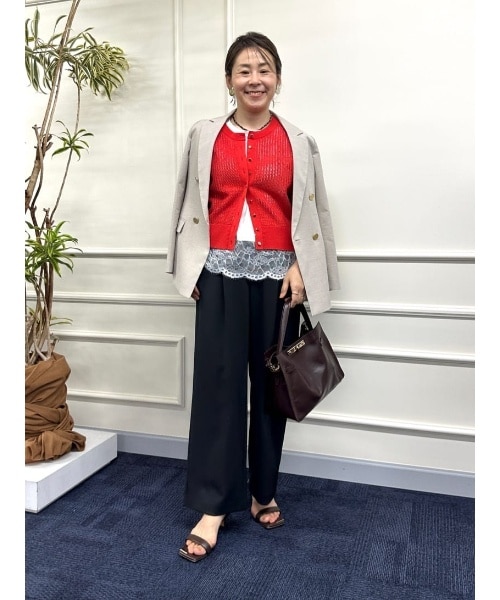 春夏にお勧めのお仕事コーデ 毎年人気のメッシュのスパンコールニットはトレンドの赤を着てみました