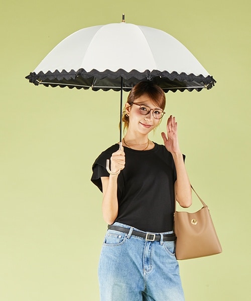 日傘 長傘 ショート丈 晴雨兼用傘 UVカット100% 完全遮光 雨傘 フリル frillia