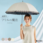 日傘 長傘 ショート丈 晴雨兼用傘 UVカット100% 完全遮光 雨傘 フリル frillia