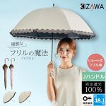 日傘 長傘 ショート丈 晴雨兼用傘 UVカット100% 完全遮光 雨傘 フリル frillia