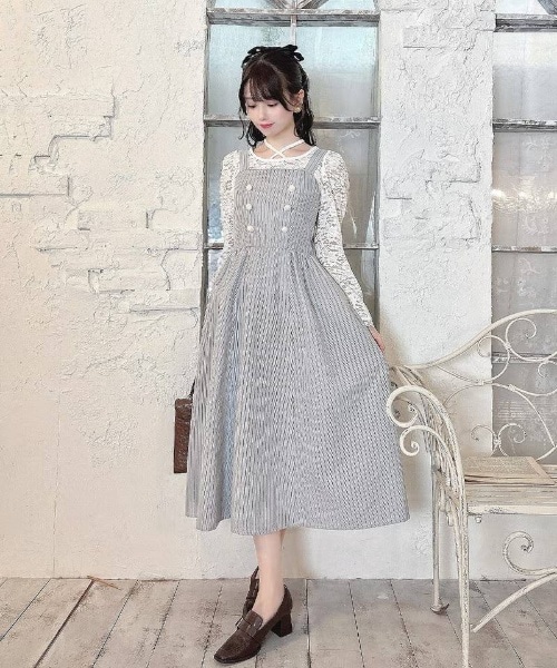 春夏ムード先取りの爽やかなストライプ柄のワンピース まるでヴィンテージシネマから飛び出したような、クラシカルなヒロインになれる1着でお気に入りです 衿が取り外せるので着回しの幅が広がるのが嬉しい!