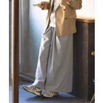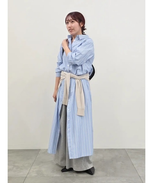 【着用サイズ ワンピース:F ニット:F パンツ:M】ワンピースは普通に着るとくるぶしピッタリくらいの長めでした。ウエストマークしてブラウジングさせることで長さを調整。Aラインのスカートをレイヤードしたようなスタイリングがおすすめです!