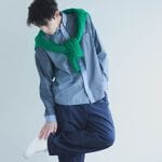 【スタイリングポイント】 デニム調のライトコートにスカーフをアクセントにした春らしいスタイルにしてみました。コートの中に白のライトブルゾンを合わせて、コートを脱いでもスタイリングのバランスが良いようにバランスを取っています。