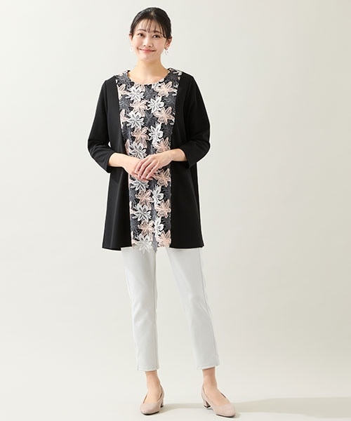 【大きいサイズ】3色使いのレースを使ったチュニックなら一枚で着映えが叶います