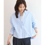 クロップド丈コットンストライプシャツブラウス/洗える
