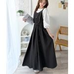 フロントに入ったタックが視線を縦に流し、自然と美脚&スタイルアップを演出。 肩紐は華奢なストラップ仕様で、体型やインナーに合わせて フィット感を調整できるのも嬉しいポイント!