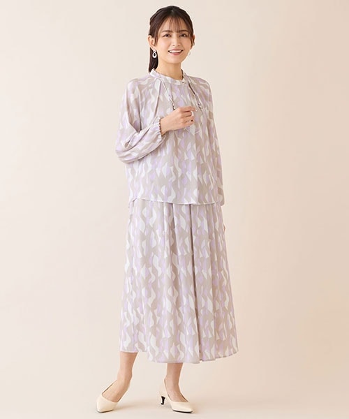 ワンピース風に楽しめる幾何柄のセットアップスタイル