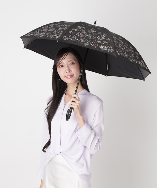 華やかさが広がる大人エレガントなデザインの晴雨兼用日傘。遮光率100%・雨の日OKと機能性抜群で、紫外線対策や暑さ対策にマストなアイテムです。長傘タイプや折りたたみタイプもあるので、ライフスタイルに合わせてお選びいただけます。