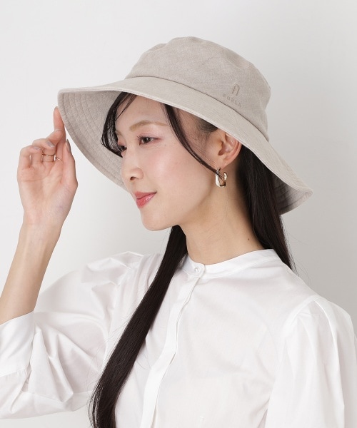 ブランドロゴをワンポイントにあしらったシンプルな広つばハット。あご紐付き・遮光・遮熱・手洗い可・サイズ調整可と機能性抜群で、紫外線対策や暑さ対策にマストなアイテムです。