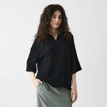 【M〜5L】ポコポコシャーリングニットハーフZIPポロ