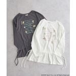 お尻が隠れる丈感のロンTです。腰回りのリボンでシルエットを変化することができます♪ヘアアレンジで顔周りはスッキリ見せて、春のゆるカジコーデです♪
