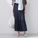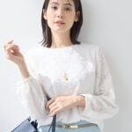 ブラウスの身頃は裏地付き、お袖部分は控えめな透け感で上品な印象に。ゆったりシルエットで1枚でも安心して着用できます!ギャザー入りスカートはウエストゴムで締め付け感なく履き心地抜群!