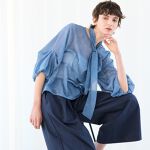 【セットアップ対応・洗える・S/M/Lサイズ】シフォンデニムプリントブラウス