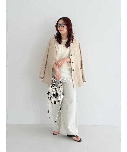 【アウター】 リネンの風合いがかっこいいテーラードジャケット。 フリーサイズですが、程良くゆとりがありストレスフリーな着心地でした!