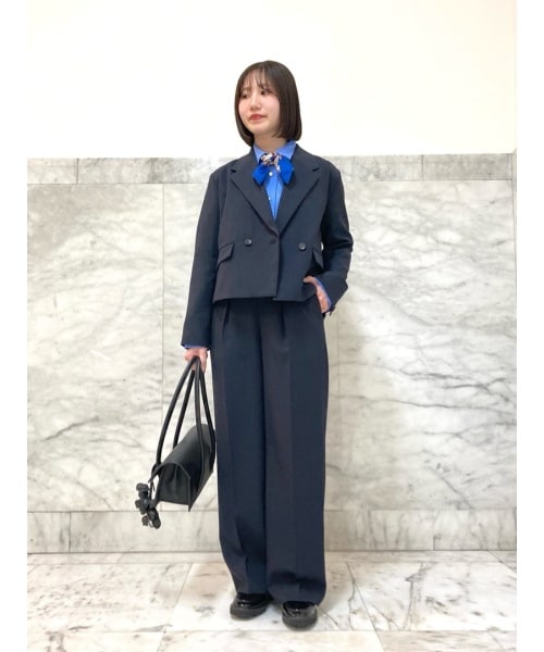 ショート丈のジャケットとセミワイドパンツのバランスがお洒落なセットアップです。きれいめからカジュアルまで幅広いスタイリングに対応します。