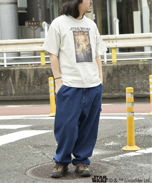 【トップス】映画『スター・ウォーズ』の世界観をグラフィックで楽しめるプリントTシャツ。 【ボトムス】気負わずはけるイージー仕様に、ワークの表情を重ねたペインターパンツ。
