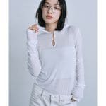 シアーな透け具合が抜け感をプラス。二つのボタンでフロントにデザインをつくることも可能。今回は敢えてフロントのボタンを開けて、デザインカットのタンクトップを仕込みました◎なにより肌触りがよく、通気性も抜群。シーズンレスでお使い頂けます!
