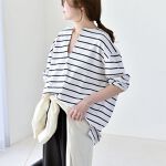 quaranciel:〈洗濯機可能〉ボーダー ビッグ スキッパー プルオーバー