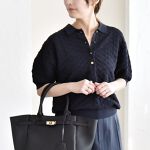 《予約》quaranciel:〈手洗い可能〉透かし編み ポロ ニット プルオーバー
