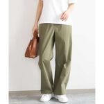 コットンライクストレッチワイドパンツ/抗ピリング/洗える