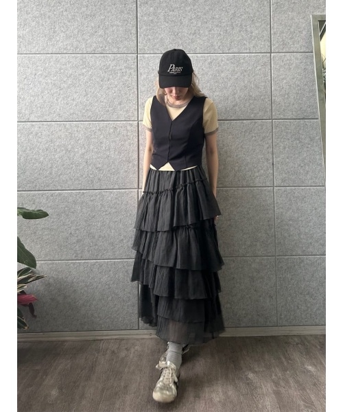 潔くミニマルなベスト。とてもシンプルなデザインなので、スタイリング次第で雰囲気をガラッと変えて楽しめるのがうれしい!コンパクトなサイズ感ですが、薄手のトップスやシャツであれば難なく重ねられます◎