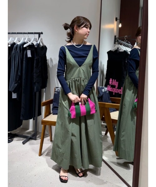 【ワンピース (ワンサイズ)】 深めのVネックが、全体のコーデに軽さをもたせてくれます。 長さも簡単に調節可能なので、雰囲気も変えやすいです