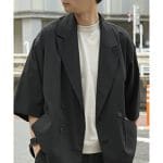 【アウター】ゆったりとしたシルエットで、肩の力を抜いた着こなしが楽しめるジャケット。 クラシックなダブルブレストをベースに、ビッグサイズと6分袖で今の空気感に仕上げました。 【ボトムス】ミリタリーの空気感をベースに、ゆったりとしたシルエットで仕上げたワイドカーゴパンツ。