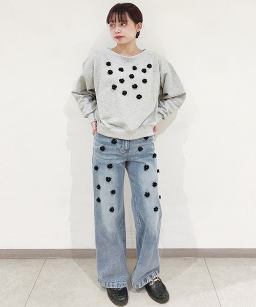 ラメ裏毛ビジュー付きプルオーバー