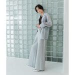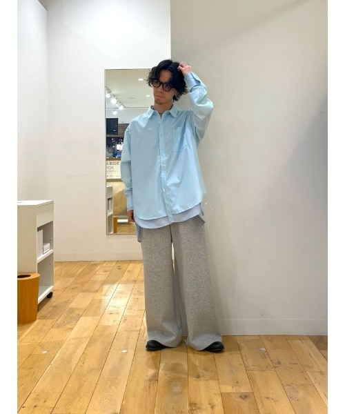 ブルーシャツにグレーパンツの春といえばみたいなスタイリング。 シャツはレイヤードデザインになっていたり、パンツはポンチ素材で肌触りが気持ちいいです。