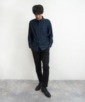 【HIDEAWAYS BLACK】カスレプリント 7分袖スタンドカラーシャツ